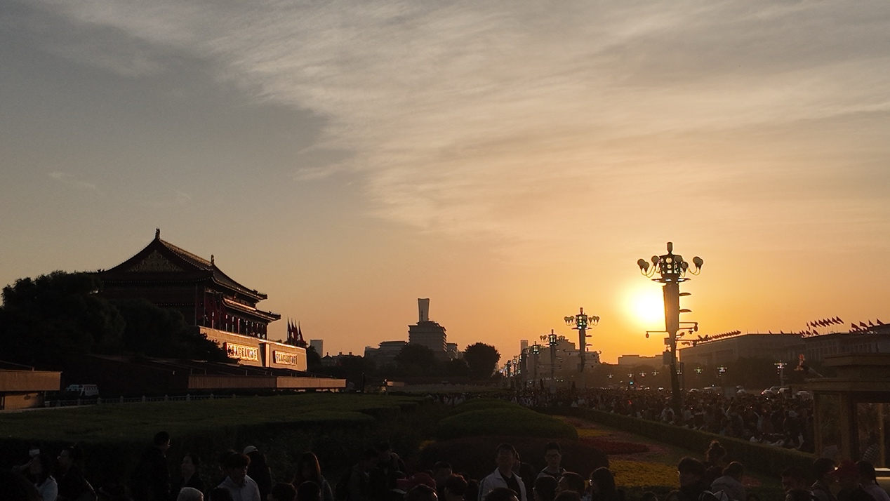 昨晚九點(diǎn),我離開(kāi)學(xué)校奔赴天安門(mén)。路上等候的時(shí)光雖久,心卻始終滾燙。來(lái)自五湖四海的人們?cè)诖讼嗑郏f(shuō)笑間分享著日常,那份松弛與歡喜,讓我真切觸摸到祖國(guó)安寧幸福的脈搏。作為醫(yī)學(xué)新生,這份景象更讓我動(dòng)容——祖國(guó)的強(qiáng)大從不止于國(guó)防經(jīng)濟(jì)的硬實(shí)力,更藏在百姓眉眼間的獲得感、心頭里的幸福感這些“軟實(shí)力”中,而這一幕,同時(shí)堅(jiān)定了我“北大醫(yī)學(xué),濟(jì)世報(bào)國(guó)”的決心。當(dāng)五星紅旗迎著晨光冉冉升起,新中國(guó)迎來(lái)76歲華誕。凝視著鮮紅的旗幟,我滿心都是對(duì)祖國(guó)的祝福:愿您生日快樂(lè),愈發(fā)繁榮富強(qiáng)!