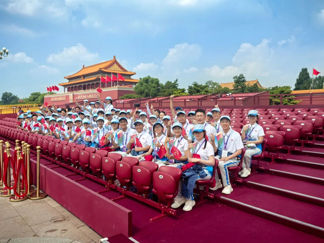 赴天安門(mén)觀禮,晨曦微露時(shí),金水橋畔的禮兵邁著鏗鏘正步走來(lái),那整齊劃一的腳步聲,似穿越百年的回響,北大始終與祖國(guó)的命運(yùn)緊密相連。禮畢后回望巍峨的天安門(mén),我更深刻地懂得:所謂“紅色精神”,不僅是歷史的記憶,更是前行的力量。作為新時(shí)代的北大學(xué)子,我更覺(jué)使命在肩,當(dāng)以史為鑒、以志為帆,在學(xué)術(shù)前沿勇攀高峰,在祖國(guó)需要處挺身而出,讓青春在實(shí)現(xiàn)中華民族偉大復(fù)興的征程中綻放絢麗之花。