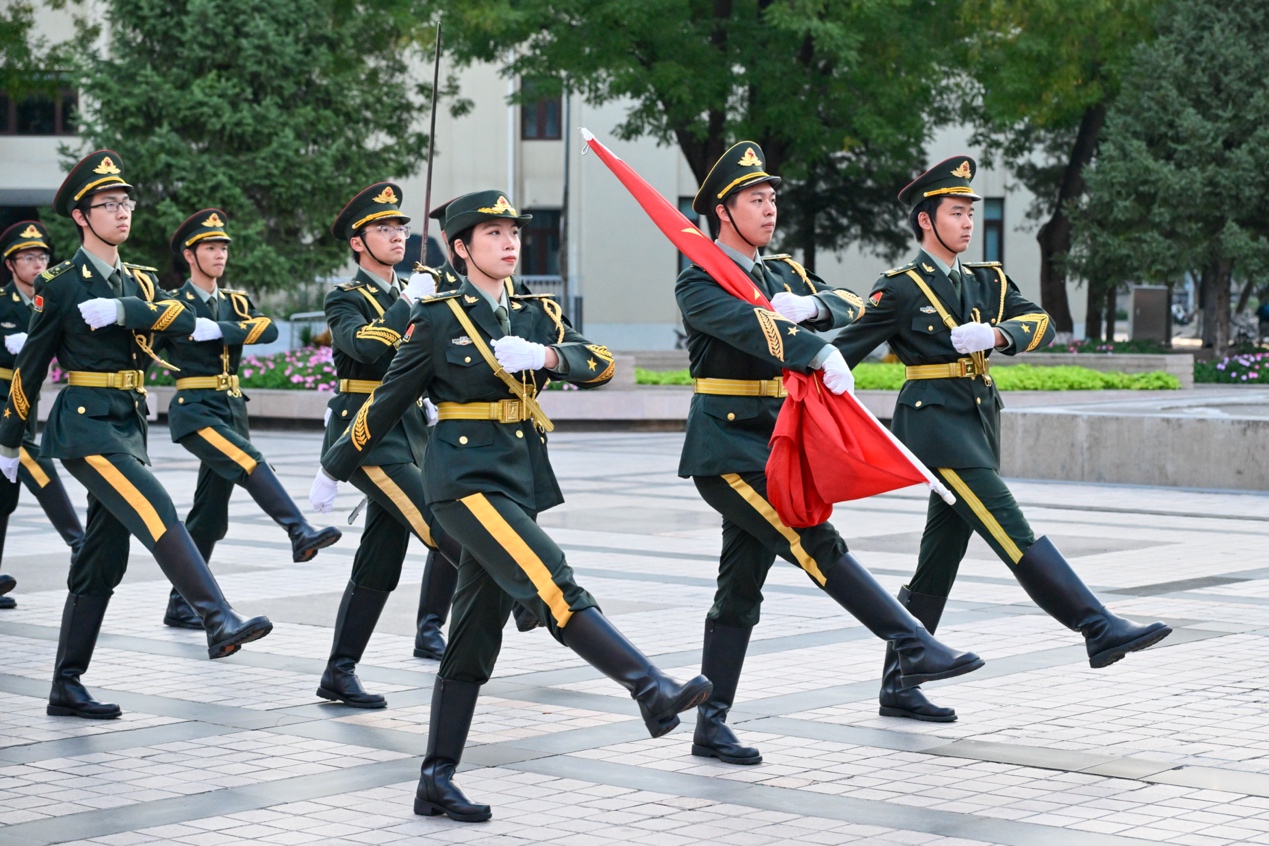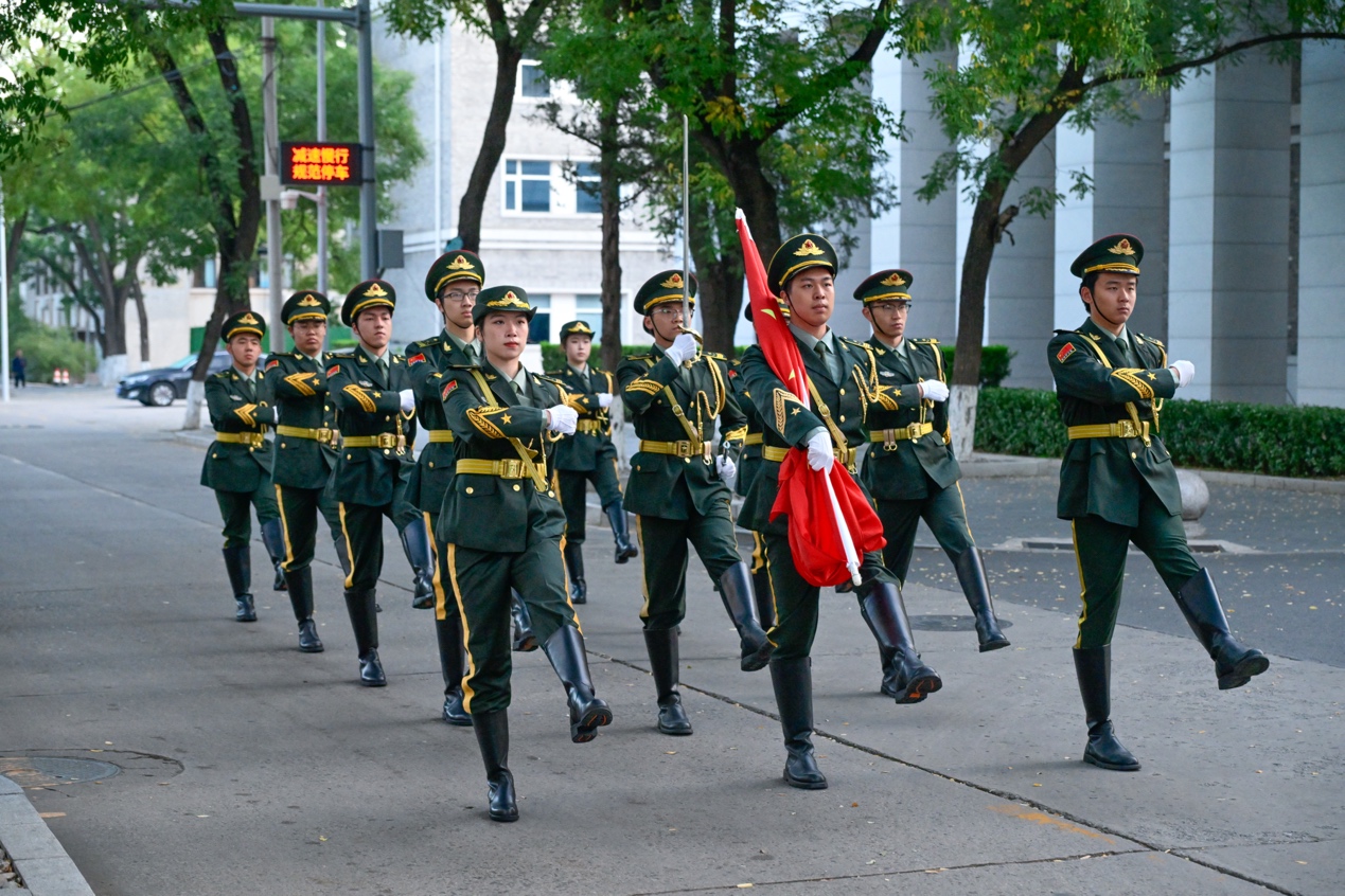 加入國(guó)旗護(hù)衛(wèi)隊(duì),是我對(duì)那身戎裝、那份莊嚴(yán)最執(zhí)著的奔赴。在國(guó)慶日穿上正裝,迎著晨曦昂首挺胸,將五星紅旗高高揚(yáng)起,讓它在風(fēng)中獵獵作響——那一刻,胸中涌動(dòng)的,是屬于一個(gè)中國(guó)人的滾燙驕傲。我們邁出的不僅是正步,更是對(duì)先輩的告慰,對(duì)和平的致敬。愿北大這片精神的家園永遠(yuǎn)青春、思想常新;更愿我深?lèi)?ài)的祖國(guó),繁榮長(zhǎng)在,國(guó)泰民安!